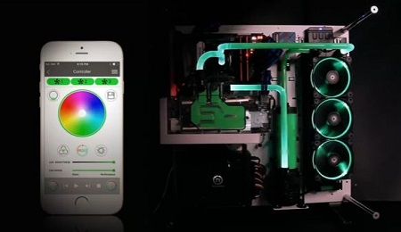 A Thermaltake élen jár a hűtési megoldásokban. Az első volt, aki RGB LED világítást épített a ventilátor keretébe. A Riing RGB Premium Edition ventilátorokhoz kapott PC szoftveren és most már a mobil applikáción is nagyon sokszínű beállítással lehet egyedivé tenni a világítást a gépben, sokáig el lehet mókázni vele. A mobilapp-ban levő hangeffektekkel vagy a telefon mikrofonján keresztül hangvezérléssel tudod a LED fényeit változtatni, akár villogtatni is.