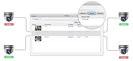 Előfordulhat, hogy egy kamerára átmenetileg nincs szükség, feleslegesen pedig miért is menne. Bármelyik kamerát a megfigyelőprogramból lehet kiiktatni és visszakapcsolni. Visszakapcsoláskor a felvétel azonnal elindulhat.