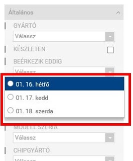 Eddig csak a készleten levő termékekre tudtál szűrni, ezentúl például már hozzáteheted a holnap beérkezőket vagy kiválaszthatsz a várható beérkezések közül egy másik határnapot.