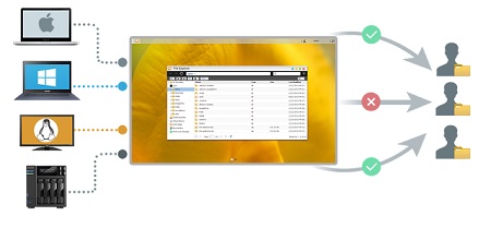 A harmadik nagy újítás a CIFS megosztott mappákon keresztül történő heterogén adatmegosztás. A rendszergazda a kliens oldalon levő mappákat (Windows, Mac, Linux, NAS) tudja az ADM File Explorer alá csatolni. Ezen keresztül gyorsan megoszthatók tartalmak a kiválasztott felhasználók között, egyúttal az egyedi hozzáférési jogosultságok is egy helyen kezelhetőek.