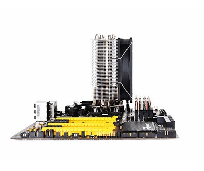 A 120 mm-es PWM vezérelt ventilátor csendes folyadék csapágyazáson pörög. hosszú életre számíthatsz tőle. A hőelvezetést a 0,4 mm vékony alumínium lamellák oldják meg, amelyek között 2.2 mm-es szabad út van az átáramló levegő számára. A lapokat 4 db 6 mm átmérőjű rézből készült hűtőcső fogja össze és közvetlenül a CPU felületével kapcsolja őket össze.
