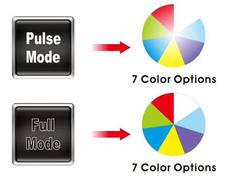 A pulzáló fény lehet piros, zöld, kék, sárga, lila, világos kék vagy fehér, valamint ezek a színek nem csak pulzálni, hanem folyamatosan is tudnak világítani.