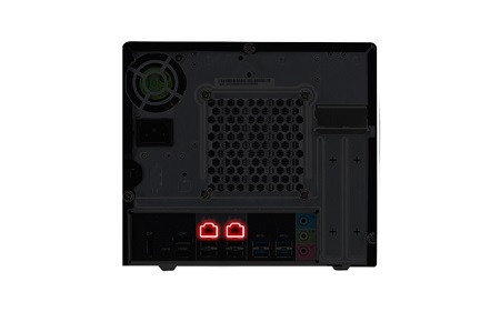 A gép hátoldalán két darab Gigabit LAN csatlakozó van a LAN partikhoz előkészítve, így a duplájára emelhető az adatátvitel sávszélessége, gyorsabb és simább játékmenetet eredményezve. Összesen tíz USB konnektor került a dobozra. A mini gamer számítógépet egy 500 W-os 80 PLUS Silver tápegység hajtja meg. Az éledező VR kultúrához is építhetsz gépet belőle.