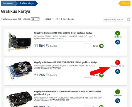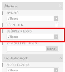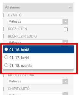 A terméklista oldalon a keresőpanelen ki tudod jelölni, hogy milyen beérkezési idejű termékek szerepeljenek a találati listán. Ha határidőre kell beszerezned valamit, akkor ezzel a szűkítéssel csak azokat a termékeket látod majd, amelyekre a megadott napig van várható beérkezés vagy éppen készleten is van már.