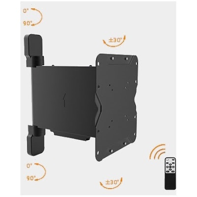 Falra szerelhető motoros LCD-, LED TV-tartó, akár 43"-os képernyőméretig. A TV 53 mm-től 304 mm-re távolodik el a faltól motorosan. A televízió távirányító segítségével balra-jobbra max. 30 fokig fordítható a fal síkjához képest. A TV be és ki kapcsolásával az előre beállított kívánt pozícióba beáll a konzol.