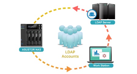 Az LDAP kliensek támogatásával a központosított irányítás minden eddiginél komfortosabbá vált. A Lightweight Directory Access Protocol (LDAP) elsősorban az egységes fiók- és jelszó kezelésre használt szolgáltatás. A vállalaton belül az LDAP technológia hatékonyabban oldja meg a hitelesítések és számítógép erőforrás engedélyek kezelését. Eddig az ASUSTOR NAS csak a Microsoft Windows Active Directory rendszerét tudta használni, az ADM 3.1 bővítette ezt a funkciót az LDAP kliensekkel. A felhasználók egyszerűen integrálhatják az ASUTOR NAS-t a meglévő LDAP szerverükbe.