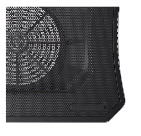 A komolyabb notebook hűtőknek szinte a teljes felületét átjárhatja a levegő, a Thermaltake Massive 20 RGB Notebook Cooler felszínét is egy lukacsos fémháló borítja. A ventilátor által keltett szél az egész notebook alját érheti.