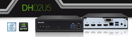 A Shuttle 1,3 literes termékvonala egy új jövevénnyel bővült. Ebben a méretcsaládban ez az új az első modell, ami már nem csak a processzorba drótozott grafikai teljesítményre támaszkodik. A Shuttle a DH02U-ba integrált egy NVIDIA GTX 1050 grafikus chip-et 4 GB grafikus memória társaságában. Ez tökéletesen elegendő például folyamatos 3D vizualizációhoz, valamint 4 db HDMI 2.0 csatlakozót biztosít négy darab monitor számára, akár 4K felbontásban.