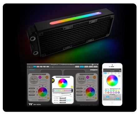 A LED panelt eredetileg a Thermaltake Pacific RL360, valamint a CL360 típusú folyadékhűtő radiátorok oldallapjára tervezték. Egyszerűen lehúzod és felragad módszerrel rögzíthető. Két sor, soronként 12 db fénydióda jeleníti meg a beállított RGB színösszeállítást.
