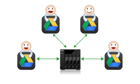 Például a Google Drive App installálásával integrálható a Google felhője a helyi privát adatokkal. A Google Drive-nak van olyan szolgáltatása, amellyel az adatok a felhőből letölthetők a NAS-ra és feltölthetők onnan a Drive-ra. Ezt hívjuk hibrid megoldásnak, az adatszinkronizáció kétirányú.