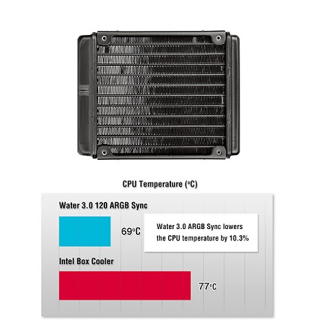A Water 3.0 120 Sync AMD4 és LGA2066 foglalatú új processzorcsaládokhoz is felszerelhető.