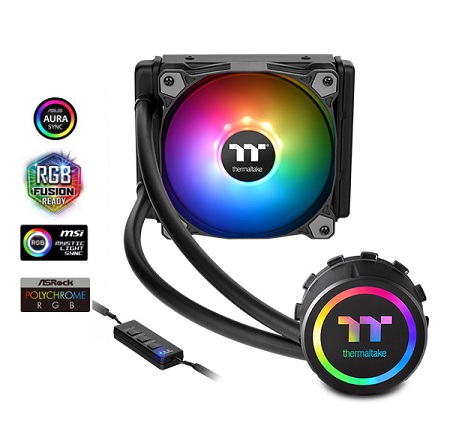 A Thermaltake Water 3.0 120 ARGB Sync Edition egy komoly radiátort tartalmaz, amelyen keresztül egy 120 mm-es ventilátor préseli át a levegőt, hogy lehűtse a processzortól érkező meleg folyadékot.