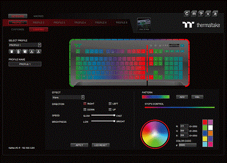 A TT iTake játékmotorja a TT RGB Plus termékek beállításához számos kényelmi funkciót nyújt. A dinamikusan változtatható fényeffektek beállításai vagy komplex játék makrók tárolható el a billentyűzet saját memóriájában. A mobilos app hangvezérlést kínál, van benne virtuális játék kontroller és virtuális billentyűzet funkció.
