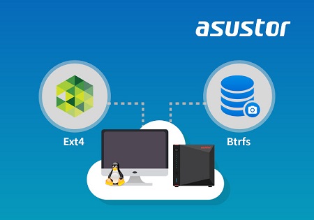 A Linuxban az Ext4 és a Btrfs két népszerű fájlrendszer. Az inicializáláskor mindkét opció megjelenik, mindkét rendszer támogatott az ADM-ben, hiszen az ASUSTOR operációs rendszere Linux bázisú.