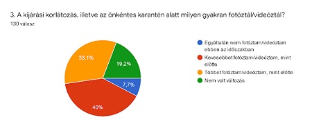 A vállalat legújabb felmérése szerint a koronavírus-járványt megelőzően a válaszadók többsége heti gyakorisággal fotózott (43%) és ennél ritkábban, havonta legalább egyszer videózott (29%). A legtöbben átlagosan 10 és 50 darab közötti képet (28,4%), illetve 10 vagy annál kevesebb videót (64,6%) készítettek havi szinten, a legaktívabbak (9%) viszont havonta akár több ezer képet is lőttek.
