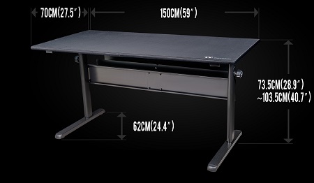 Az asztalt intenzív játékhoz tervezték. Az erős motorok akár 150 kg súlyt is meg tudnak mozgatni, a monitor(ok), a gép és minden egyéb kellék felkerülhet rá. Az egész szerkezet tartós, masszív acél, az asztallap vastagsága 3 cm.