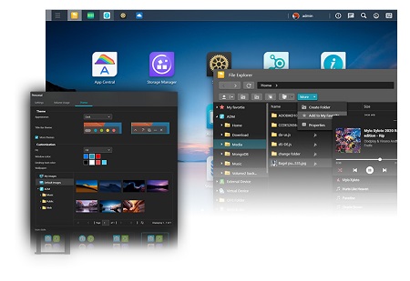 Az ADM 4.0 béta újragondolja a felhasználói felületet. A teljesen megújult bejelentkezési oldal kezeli a témákat és egyéni kinézetet, ezek között például a saját háttérképeket vagy saját elrendezéseket, így a NAS teljesen a sajátodnak érezheted.