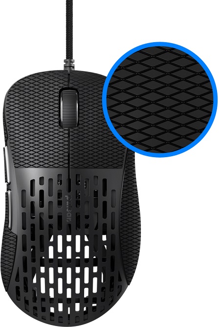 Azok számára, akik jobban kedvelik a tapadós, ragaszkodó felületet, a Pulsar Gaming róluk is gondoskodott. Az Xlite egérhez tartozik egy lélegző markolatszalag, amely eltakarja az egér oldalát és a kapcsoló tetejét.