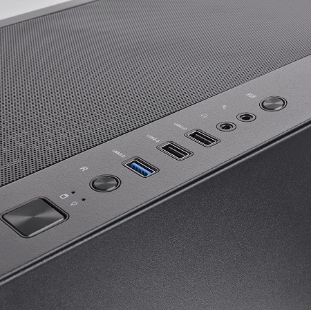 A teljesen minimalista előlapot feldobja a szolidan végigfutó RGB világítás. A fények a ház tetejére kivezetett portok - USB, audio csatlakozók - melletti RGB gombbal különféle stílusban állíthatók.
