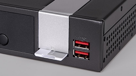 A csendes és minimális karbantartást igénylő Mini-PC-k rengeteg praktikus porttal rendelkeznek. Ezek közé tartozik három különböző monitor port, COM port és USB 3.2 Gen 2 csatlakozó 10 Gbit sebességgel.