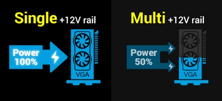 VGA-hoz tervezett erőteljes + 12 V-os egysínes kivitel