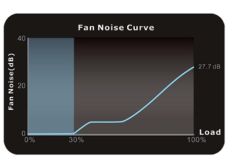 30 százaléknál alacsonyabb terhelés mellett a ventilátor munkájára nincs szükség, a tápegység teljesen zajtalan.