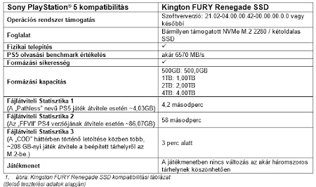 A gyártó előírásai szerint kizárólag PCIe Gen4 M.2 NVMe típusú SSD-vel bővíthetjük a konzol tárhelyét, ami legfeljebb 4 TB kapacitású. Az SSD-nek rendelkeznie kell hőelvezető mechanizmussal, például hűtőbordával vagy hőelosztóval, és ezzel együtt is legfeljebb 11,25 mm magasságú lehet, a szekvenciális olvasási sebességnek pedig hoznia kell a minimálisan elvárt 5500 MB/s-ot. Fontos, hogy a tárhelybővítéshez csak a PlayStation® követelményeinek megfelelő meghajtót használjunk, mint például a Kingston FURY Renegade M.2 Gen 4x4 SSD.