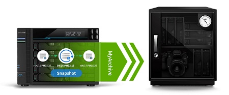 A MyArchive a NAS-t archívumgyárrá varázsolja. Annyi adatarchívumot készíthetsz, ahány merevlemezed van. Hozz létre MyArchive meghajtókat másodlagos offline biztonsági mentés céljából, amelyek azonban továbbra is könnyen elérhetők maradnak az ASUSTOR NAS-hoz való újracsatlakozással. A MyArchive támogatja a Btrfs-t is, ami azt jelenti, hogy pillanatképek is készíthetők egy további adatvédelmi réteg gyanánt. A MyArchive a saját, független rendszered lesz: a leválasztott meghajtókat nem érhetik ransomware vagy vírustámadások. Továbbá, a MyArchive meghajtók helyszíni biztonsági mentésnek is számíthatnak, persze mindaddig, amíg a fájlok eredeti példányát nem törlik a NAS-on, illetve van legalább egy másik helyszíni másolat is.