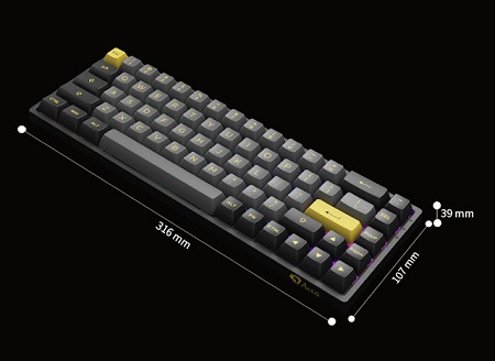 Az Akko Gear 3068B típusú billentyűzetének háttérvilágítása személyre szabható. Rendkívül vékony felépítményű, a teljes méretű billentyűzethez mérten 65%-os méretű gamer billentyűzet.