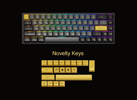 Fekete-arany téma: a fekete és az arany egy feltűnő kombináció, amely eleganciát és luxust kölcsönöz. Az extra Novelty Key billentyűk egyedi színséma megvalósítását teszik lehetővé. Arany díszítés a fekete háttér előtt pazar, de nem hivalkodó és pihentető térré varázsolja asztalodat.