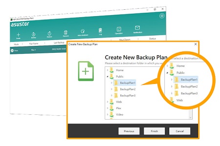Korábban az ASUSTOR Backup Plan csak az ADM megosztott gyökérmappáját tudta kiválasztani célhelyként. Az új ASUSTOR Backup terv most már képes almappákat is kiválasztani egy mentési célhoz az ASUSTOR NAS-on, így téve rugalmasabbá a szervezést.