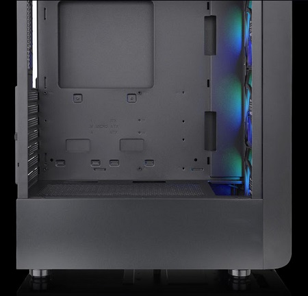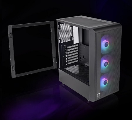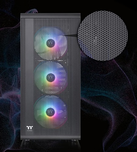 A Thermaltake S200 TG ARGB Mid Tower számítógépházak homlokzata nyitott. A hálós előlap mögött három darab előre telepített hidraulikus csapágyas, 120 mm-es, ARGB Lite ventilátor dolgozik. Az RGB világítását az ASUS, a GIGABYTE, az MSI és az ASRock alaplapi szoftverei vezérelhetik. Emellett akár hat darab 120 mm-es ventilátor is beszerelhető vagy egy legfeljebb 360 mm-es hűtőradiátor. A hűtés kiváló lesz.