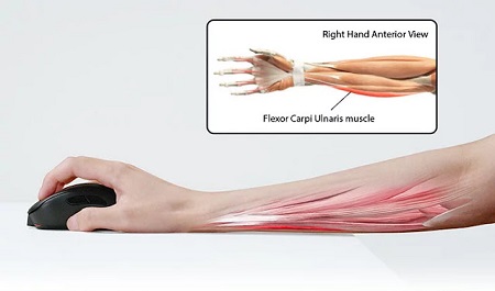 A felső része, a héj természetes görbületet biztosít a kéznek, lazán alátámasztva a tenyeret és az ujjakat, nagyobb stabilitást biztosítva a vízszintes mozgáshoz. A bal oldal görbülete a hüvelykujj egyszerű elhelyezéséhez készült. Karomfogáskor elősegíti a stabil fogást az egér felemelésekor vagy mozgatásakor. A jobb oldal sima és lekerekített kialakítása segít a gyűrűs- és a kisujj kényelmes elhelyezkedéséhez.