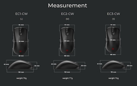 A Zowie By BenQ ikonikus, EC védjegyes formája nagyon széles körben használt az aszimmetrikus, ergonómikus dizájnt kedvelő játékosok körében.