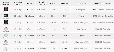 A Cherry MX Switch a leghíresebb kapcsolósorozat, amely kiváló, sima és tapintható gépelési élményt kínál.