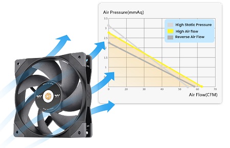 A nagy statikus nyomású ventilátorlapát célja, hogy megbirkózzon a nagy légellenállású tárgyakkal, például radiátorokkal vagy több edzett üveglappal rendelkező házzal.