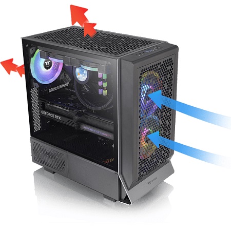 A zuzatos Ceres 300 ház akár 360 mm-es AIO radiátort vagy öt darab 140 mm-es ventilátort, vagy összesen hét 120 mm-es ventilátort tud befogadni, optimális hűtési megoldást biztosítva a beépített alkatrészek számára.