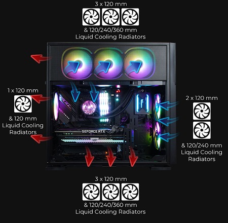Többféle hűtési konfigurációt tudsz kiépíteni. Az N515 két hálós panellel és méhsejt szellőzőnyílásokkal rendelkezik, amely kilenc ventilátor befogadására alkalmasak. A ház lenyűgöző és fényes Luna AL120 ARGB PWM ventilátorral van felszerelve gyárilag.