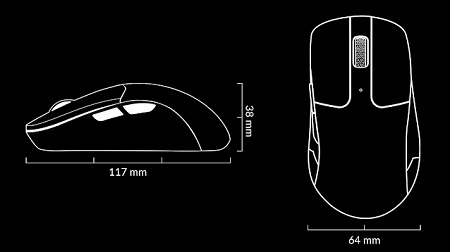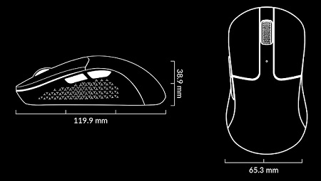 Az egér ergonómikus ívelt kialakítása kényelmes fogást biztosít hosszúra nyúlt használat során is. Az egerek jobbkezeseknek készültek, az aszimmetrikus forma teszi még jobbá a fogását.