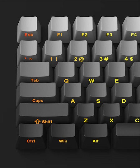 Közelebb hajolva a PBT double-shot beillentyűsapkák kerülnek a fókuszba, ellenállóak a kopással szemben, szinte örök életűek és a fémes csillogású ház mellett kiemelik a billentyűzet egyediségét.
