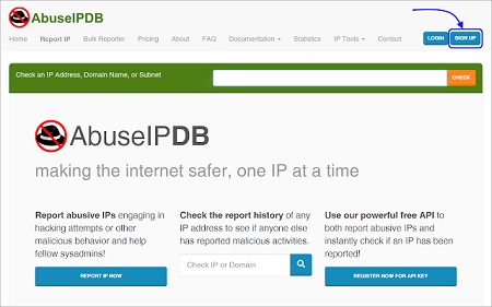 A funkció kihasználásához először regisztrálnia kell egy fiókot az AbuseIPDB-n, és be kell szereznie egy API-kulcsot.