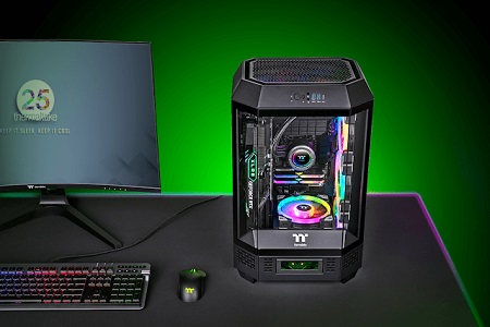 A The Tower Series új kiadásaként a The Tower 300 a klasszikus függőleges házkialakítást örökli, de nyolcszögletű prizma alakban érkezik. Elképesztő hardverkompatibilitással rendelkezik: 4090-es, szabványos 220 mm-es tápegység és 420 mm-es AIO-radiátoroknak van hely. Sőt, akár nyolc darab 120 / 140 mm-es ventilátort is elhelyezhető a tetején, hátulján, a tápegység fedelén és a jobb oldali ventilátortartón. Ha látványosabbá szeretnéd tenni a The Tower 300-at, vásárolj hozzá egy 3,9 hüvelykes LCD képernyő készletet!