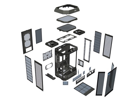 A számítógépház három oldalán 3 mm vastag edzett üvegpanelek biztosítanak 180 fokos betekintést a belső alkatrészekre. Az üvegpanelek könnyen eltávolíthatóak anélkül, hogy bármilyen eszközt kellene használnod.