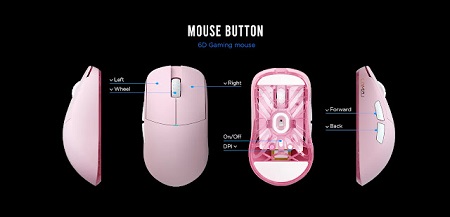 Világos rózsaszín színben kapható, méretei 117 mm x 63 mm x 37 mm, súlya pedig körülbelül 51 g. Tartozékai: a PTFE csúszótalpak, USB dongle, Type-C para cord zsinór, bársonytáska és egy adapter.
