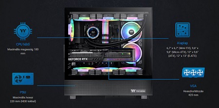 A Thermaltake View 270 TG ARGB tökéletes választás azok számára, akik nem csak nagy teljesítményű, hanem egy stílusos megjelenésű számítógépet szeretnének építeni. Az ARGB világítás, a kiváló hűtési lehetőségek és az edzett üveg dizájn összhangja egyedivé teszi ezt a házat a piacon.