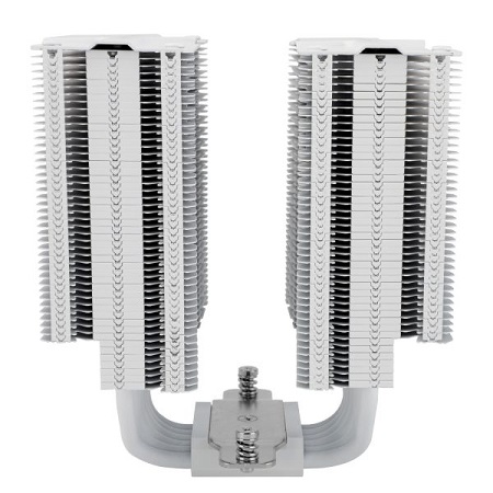 A hűtő kéttornyos kialakítása az egytornyos processzorhűtőknél sokkal nagyobb felületet biztosít a hőleadáshoz, hatékonyabban csökkenti a processzor hőmérsékletét még nagy terhelés mellett is.