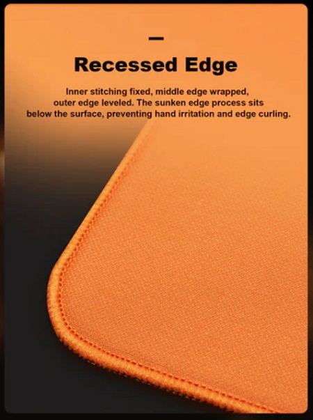 Az ATK az összeállításnál is odafigyelt a részletekre. A szélek varrása az egérpad felületének síkja alá került, hogy megakadályozzák ezzel a megoldással a kézirritációt vagy éppen a kopást a hosszabb használat során. Ez típusú varrás nem csak az egérpad tartósságát növeli meg, hanem kényelmesebb kezelési élményt is ad.