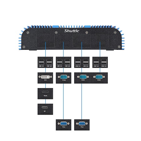 Ami igazán különlegessé teszi a BPCAL02-t, az a moduláris bővíthetőség. Az előlapon többféle opció kérhető: további videókimenetek (HDMI, DisplayPort, DVI, VGA), extra COM portok, akár 16 db USB 2.0, további 2.5G LAN csatlakozók, vagy digitális I/O bővítők. Külön figyelemre méltó az autós gyújtásvezérlés bemenete és a külső bekapcsológomb / tápellátás terminálcsatlakozója – ez például járművekbe vagy automatákba való beépítést is lehetővé tesz.