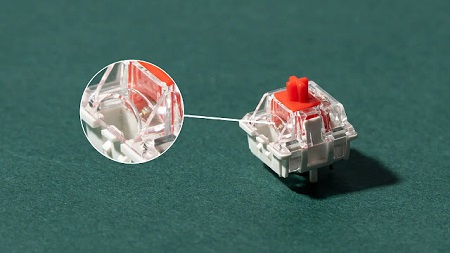 A Super Switch új öntőformával készült, amely nagy pontosságot és sima működést biztosít. Az átlátszó felső ház különleges, ívelt fényvezető szerkezetet kapott, amely magas szintű fényáteresztést biztosít, így az RGB világítás egységesebb és élénkebb. Ha jobb fényáteresztésű kupakot használunk, a billentyűzet világítása még markánsabbá válik.