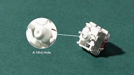 A kapcsolók gyárilag előre kenve érkeznek, a kenés csökkenti a súrlódást és az akadásokat, ezáltal simább leütést eredményez. A stabilitást az 5 tűs kialakítás erősíti, a ház alsó részén kialakított mini nyílás pedig az érintkezés során keletkező légellenállást mérsékli.